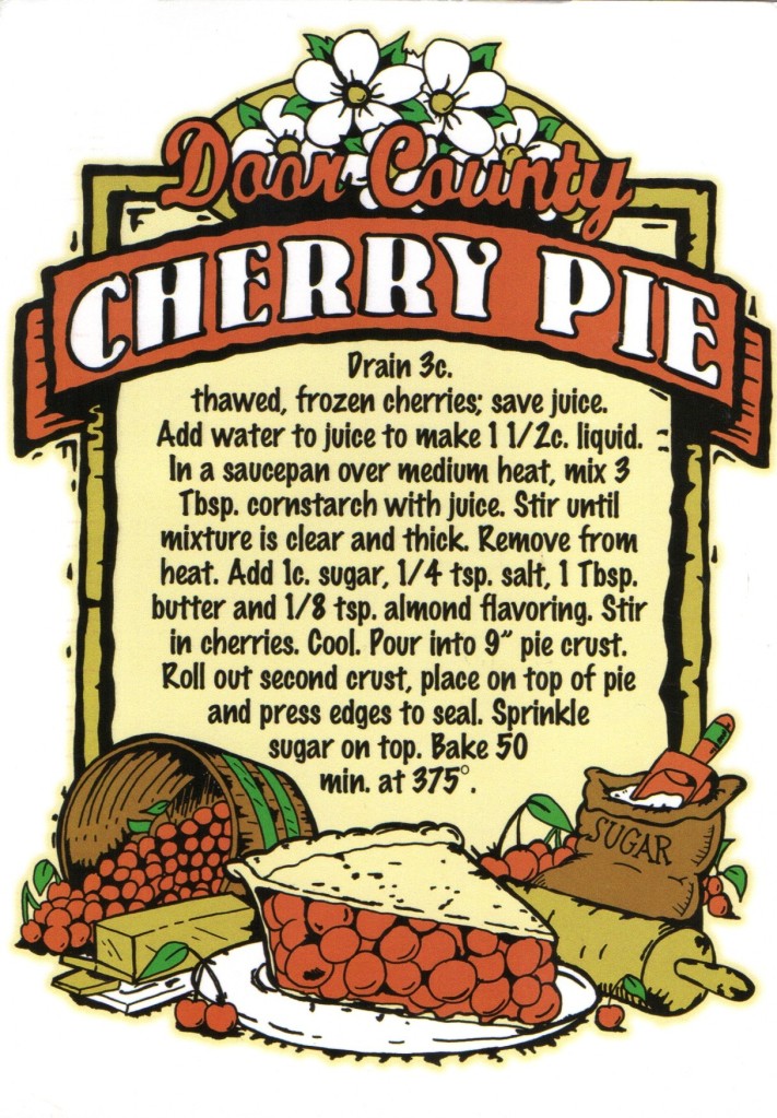 The famous American pie, this time with cherries, on a postcard, with a recipe, with a message from Door county, with everything. This is when a person dedicates himself, starting from scratch and do something big and then selflessly is shared with the world. We may never buy from them, but they willingly share their recipe with the world.