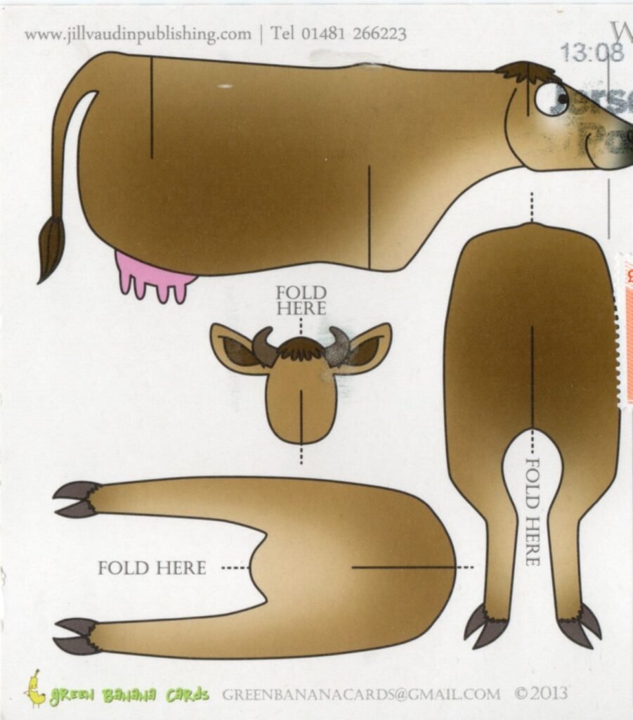 If you don’t know how to show your love to your close ones, just send them a cow. Preferably by post. Nowadays that is very easy, believe me. I loved it, but I can just say that is a postcard crime if you ever try to cut a postcard, for whatever reason. Not even an authentic Jersey cow… So my special cow will stay in pieces in my collection, luckily in one place.