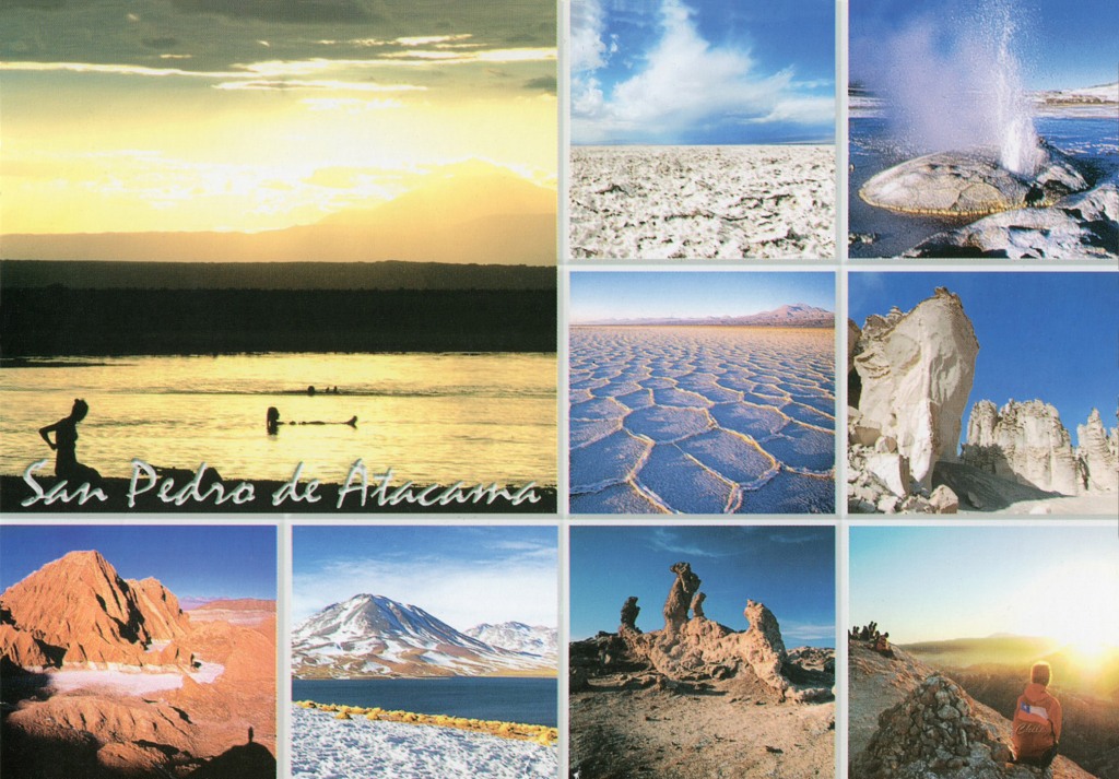 This postcard is amazing. Its not only front that makes it special, but on the back has few more photos of other amazing places in Chile as well as their traditional cocktail recipe. Additionally the positive words are spread over the back of the postcard by Carolina, which complement the postcard and the picture of how attractive Chile is in general. The sand, the beaches, the mountains, the volcanoes, the desert…
