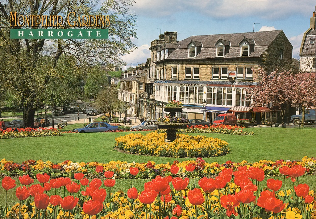 Additional info (the info is written at the back of the postcard by the publisher) – Montpellier Gardens achieved early fame as a spa resort and nowadays is an important conference center. Its mineral springs were discovered in the 16th century and the Royal Pump Room was built as the country’s first public baths in 1842. From that time onwards the town’s popularity steadily increased, resulting in a wealth of dignified stone buildings and beautiful gardens that have made it known as the Floral resort of England.