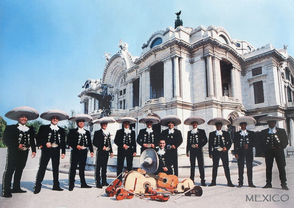 Additional Info – The Mariachi on the postcard are posing in front of the Palace of fine art which is considered as most important cultural center in Mexico city and in Mexico in general, because contains magnificent murals from Diego Rivera , Clemente Orozco and Alfaro Siqueiros (this is written on the back of the postcard). The Palacio de Bellas Artes building was built in 1904 designed by Adamo Boari, and was inaugurated in 1934. Some artists and groups from all parts of Mexico have called this building as the “Cathedral Art De Mexico”, because is an important cultural center in Mexico. UNESCO has declared this building as an artistic monument in 1987.